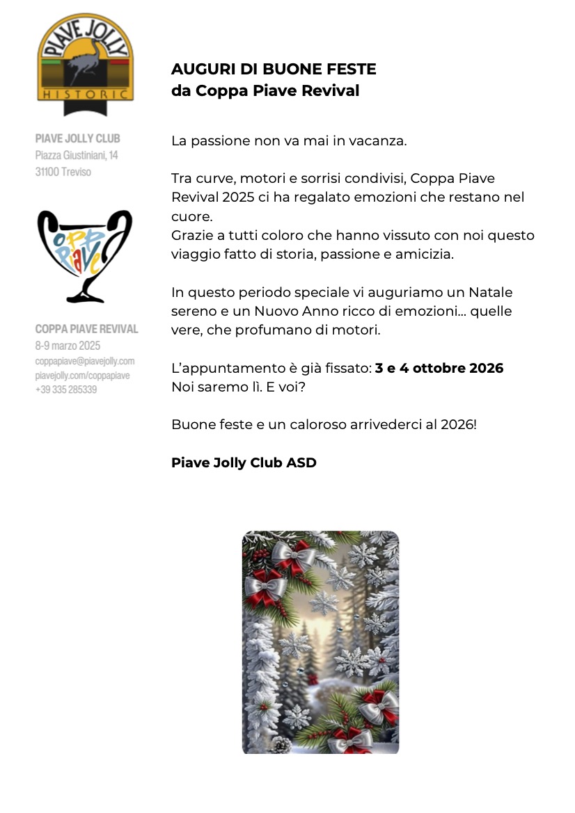 • AUGURI DI BUONE FESTE da Coppa Piave Reviva